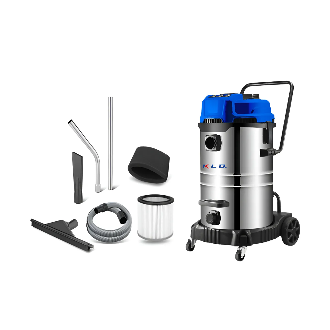 KLDASP60 Aspiradora tacho metal 60 lts 2x1200w – 2400w Voltaje-Frecuencia: 220v – 50Hz. Potencia: 2400W (2 motores de 1200w). Capacidad: 60L. Aspiracion en seco y humedo con funcion de soplado Doble motor: Muy potentes y de alta eficiencia Con funcion de limpieza de filtro Con diseno de almacenamiento util para accesorios y cable de alimentacion Con clips de tambor facilmente desmontables y diseno robusto de cuerpo y tapa.