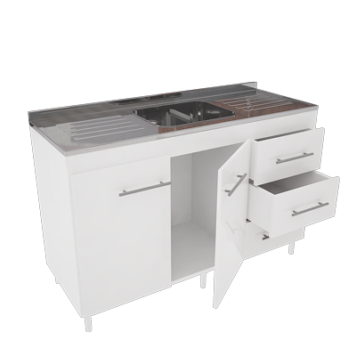 BAJOMESADA 1.2 BLANCO CON TAPA DE ACERO INOXIDABLE- 3028
