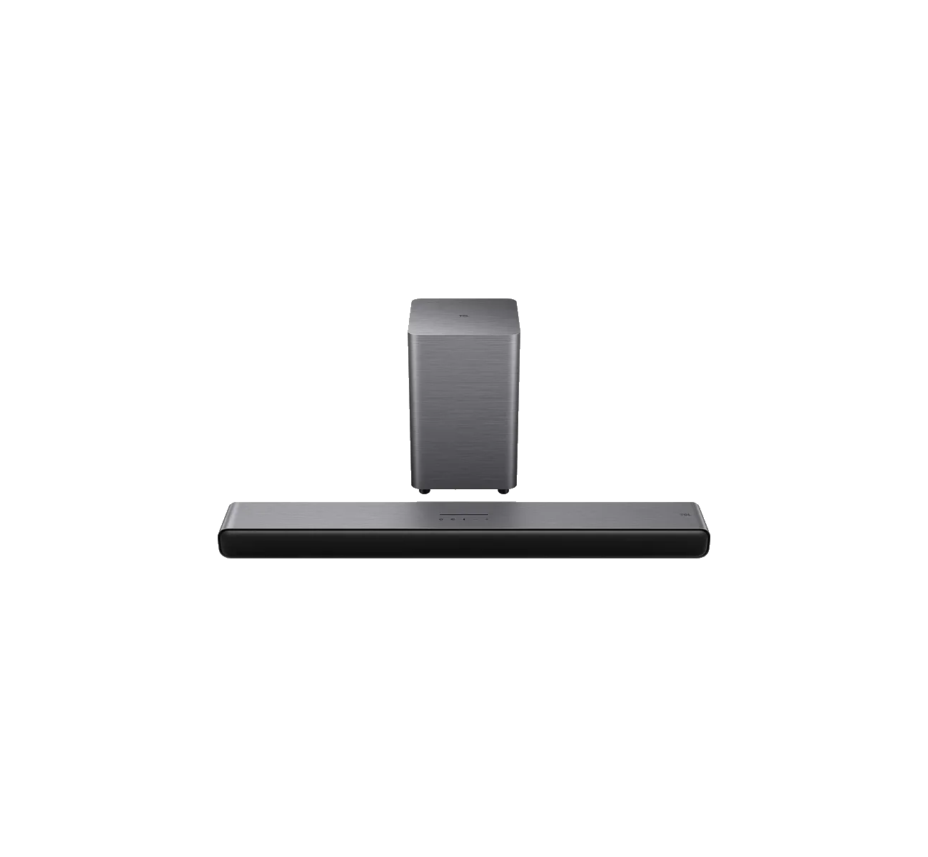 TCL Soundbar Super Bass S55H 2.1ch Pro Sistema de Bajos Dual Camaras de Eco de Doble Bocina Subwoofer Inalambrico Tutti Choral Dolby Atmos DTS Virtual:X Calibracion de sonido optima Modos de sonido especializados Sonido Adaptativo con IA HDMI 2.0 con eARC Tamano de la barra 810 x 60 x 98 mm Boton tactil Tamano del subwoofer 195 x 320 x 195 mm Pantalla de la barra de sonido Luces LED Control remoto