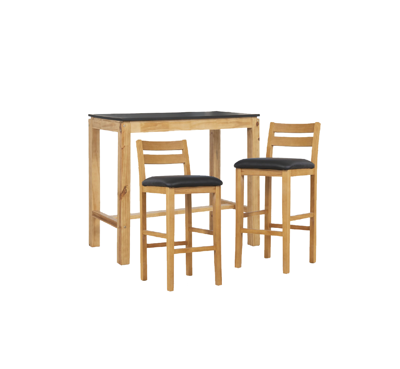 BARRA + 2 BANQUETAS MODERNA Desayunador mesa alta Estructura en madera maciza de Pino y tapa MDF 18 mm. Medidas: 1,19 x 0,59 x 1,02m Banqueta alta Estructura en madera maciza de Pino y tapizado en eco-cuero Medidas: 0,37 x 0,40 x 0,70cm