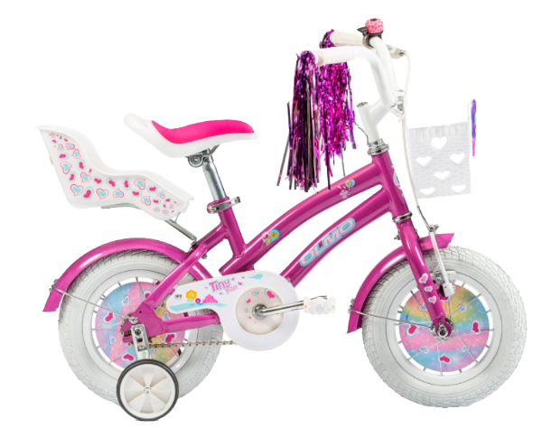 RODADO 12 CUADRO Acero HORQUILLA Rígida FRENOS V-Brake resina blancos • Asiento con agarre para asistencia de adulto • Guardabarro • Cubrecadena • Canasto delantero • Portamuñeca • Estabilizadores • Flecos en los puños • Timbre • Placa para ruedas