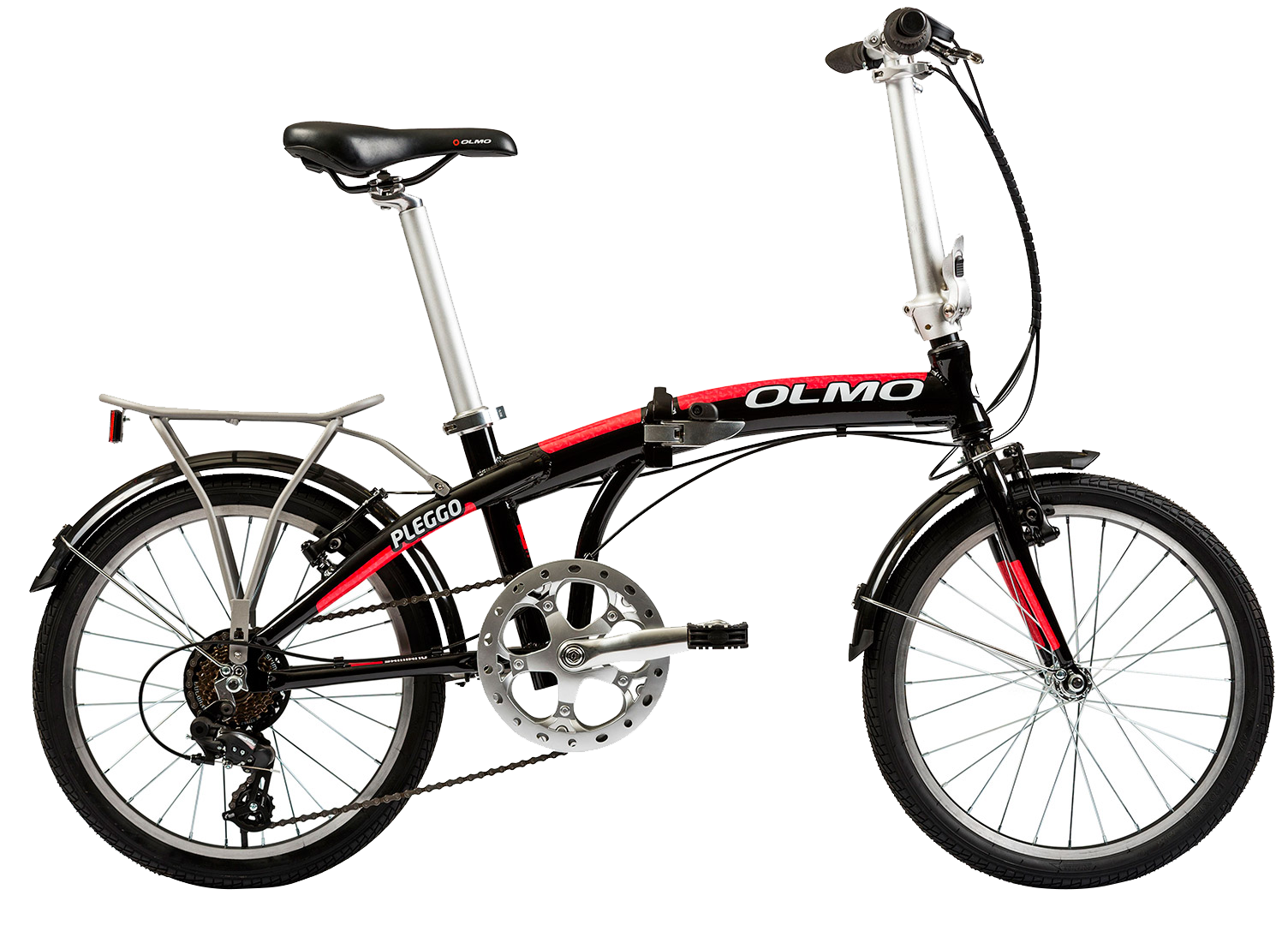 RODADO 20 CUADRO Aluminio HORQUILLA Rígida CAMBIO TRASERO Shimano FT-35, 7 velocidades FRENOS V-Brake aluminio DIMENSIONES (PLEGADA) 80 x 71 x 40 cm. PESO 13,3 kg. DESTACADOS • Guardabarro • Portaequipaje • Manijas Shimano Revoshift • Stem plegable telescópico • Pedales plegables • Llantas CNC https:–olmobikes.net-bicicleta-pleggo-p20-
