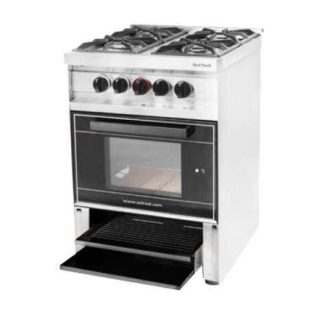 575-GNVVP – COCINA MINI 575-GNVVP 4 H. PUERTA DE VIDRIO Y PARRILLA Gabinete totalmente construido de acero inoxidable. Mecheros de aluminio fundido. Interior de horno completamente enlozado, con piso de tejuelas refractarias. Incluye 3 rejillas extraíbles de 43 x 44 cm. Puerta de vidrio templado con manija metálica. Parrilla desplegable con recolector de grasa y manija metálica. Aislación de lana mineral. Válvula de seguridad en el horno. Rejas de fundición. Peso Neto: 40,2 Kg. Kilocalorías-h: 20.000 https:–solreal.com-index.php?route=product-product&path=20_25&product_id=14