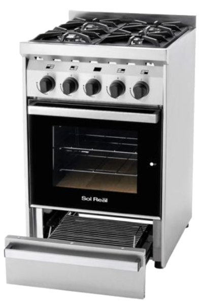 COCINA PROFESIONAL 4 HORNALLAS CON VISOR Y PARRILA 516-MGVP SOL REAL