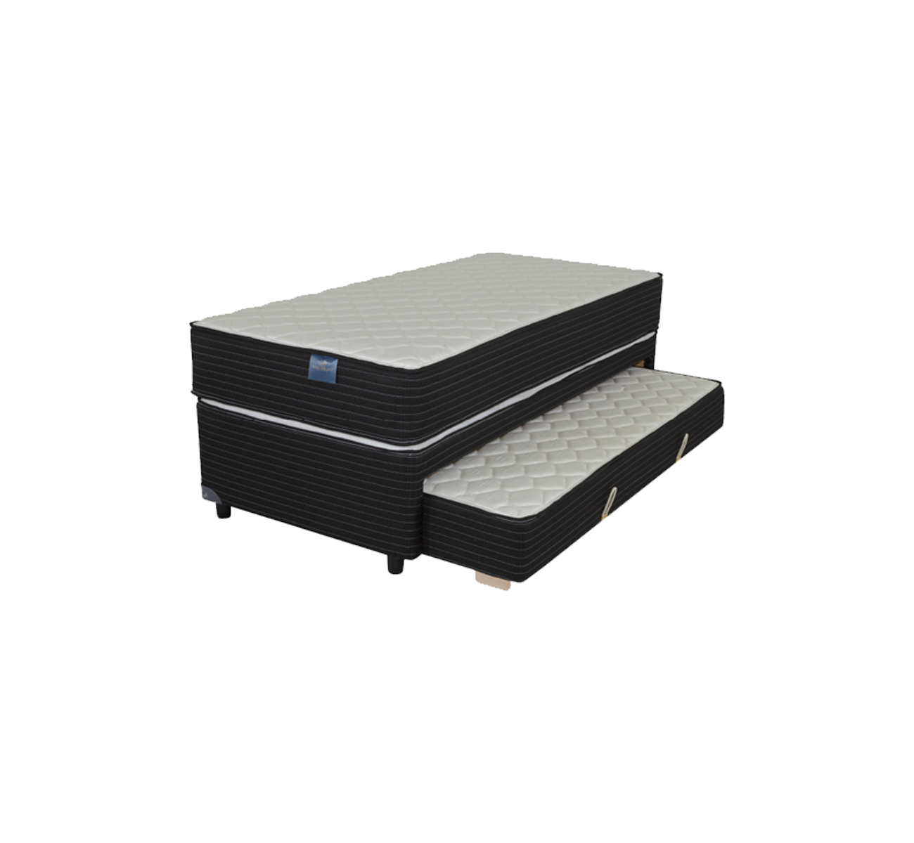Linea Marinera TELA JACKARD IMPORTADO – TEJIDO DE PUNTO TOTALMENTE MATELASEADO. COLCHON SUPERIOR DE RESORTES: RESORTE DE ACERO BICONICO CON MARCO PERIMETRAL DE ACERO 90 X 190 CM. COLCHON INFERIOR DE ESPUMA DE ALTA DENSIDAD CON BASE DE MADERA TOTALMENTE MATELASEADA Y CON RUEDAS. SOMMIER: ESTRUCTURA DE MADERA DE ALTA RIGIDEZ ALTAMENTE REFORZADA CON ESPUMA DE POLIURETANO EN LA PARTE SUPERIOR DEL BOX PERMITIENDO HASTA LA OPCION DE QUE UN NIÑO DUERMA SOBRE EL SOMMIERS. BAJANDO EL COLCHON PUEDEN DORMIR HASTA 3 PERSONAS. SOPORTA HASTA 100 KG POR PERSONA PARTE SUPERIOR 90 X 190 PARTE INFERIOR 80 X 180 ALTO TOTAL 65