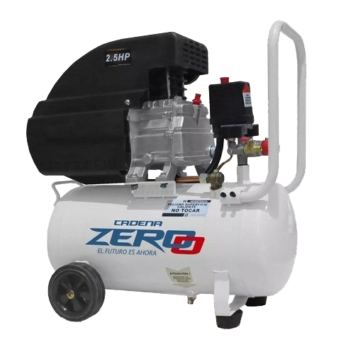 Compresor 25 lts – ZECO25 – Motor: Monocilindrico – Potencia: 2,5 HP – Capacidad de tanque: 25 litros – Caudal de aire: 210 lts/min – Presión: 110 lbs – 8 Bar – Tensión: 220v – Monofasico – Función de corte y arranque automático para mayor comodidad -Tanque de fundición pintado al horno – Doble salida de aire – Válvula de seguridad – Válvula de drenaje – Regulador de presión con manómetro – Filtro de aire plástico desmontable – Manija ergonómica y ruedas para transportar – Peso aproximado. 24 Kilos – Incluye 1 botella con aceite 300ml