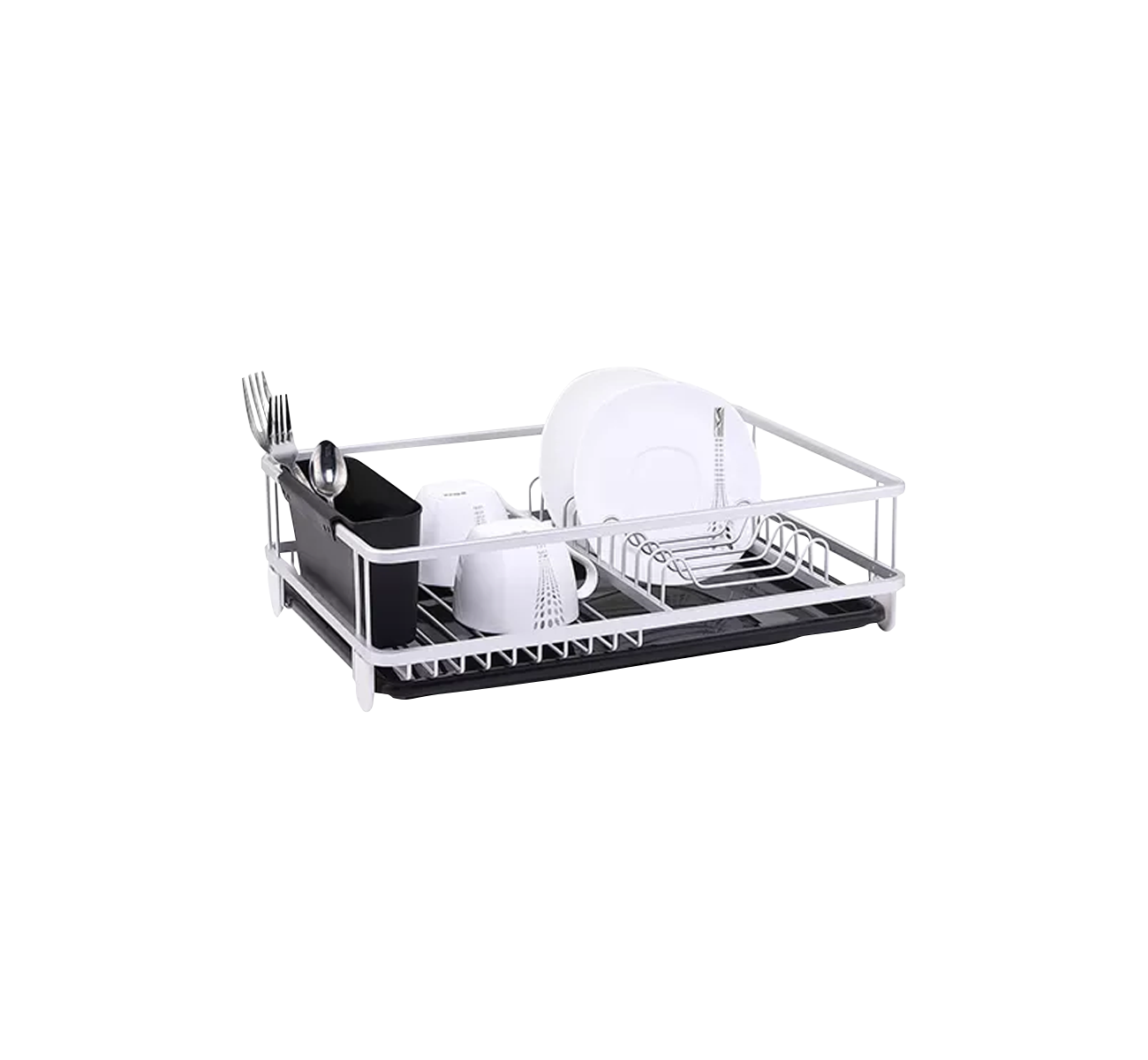 ESCURRIDOR DE PLATOS TYPICAL ALUMINIO PLATEADO UTILE Bandeja plastica de color negro, sin desagote. Escurridor de cubiertos plastico con division Estructura de aluminio plateado Capacidad para 11 platos Totales: Largo 43 cm | Ancho 30 cm | Altura 12 cm Bandeja: Largo 41 cm | Ancho 28 cm | Altura 1 cm Escurridor de cubiertos: Largo 19 cm | Ancho 5,5 cm | Altura 10 cm Peso: 1,2 kg