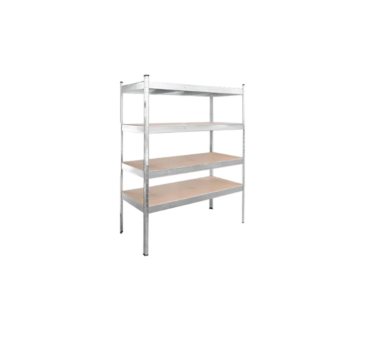 Estanterias Regulables De 4 Niveles Tamano del producto: 1600 mm (Ancho) x 600 mm (Profundidad) x 1800 mm (Alto) Capacidad de carga por estante: 500 kg (la carga debe distribuirse uniformemente) Material: Tablero de MDF y estructura de acero galvanizado Espesor del tablero MDF: 6,8 mm Espesor de la estructura de acero: 0,90 mm Incluye 2 refuerzos de soporte en cada estante Acabado de superficie: Galvanizado Empaquetado en caja de carton