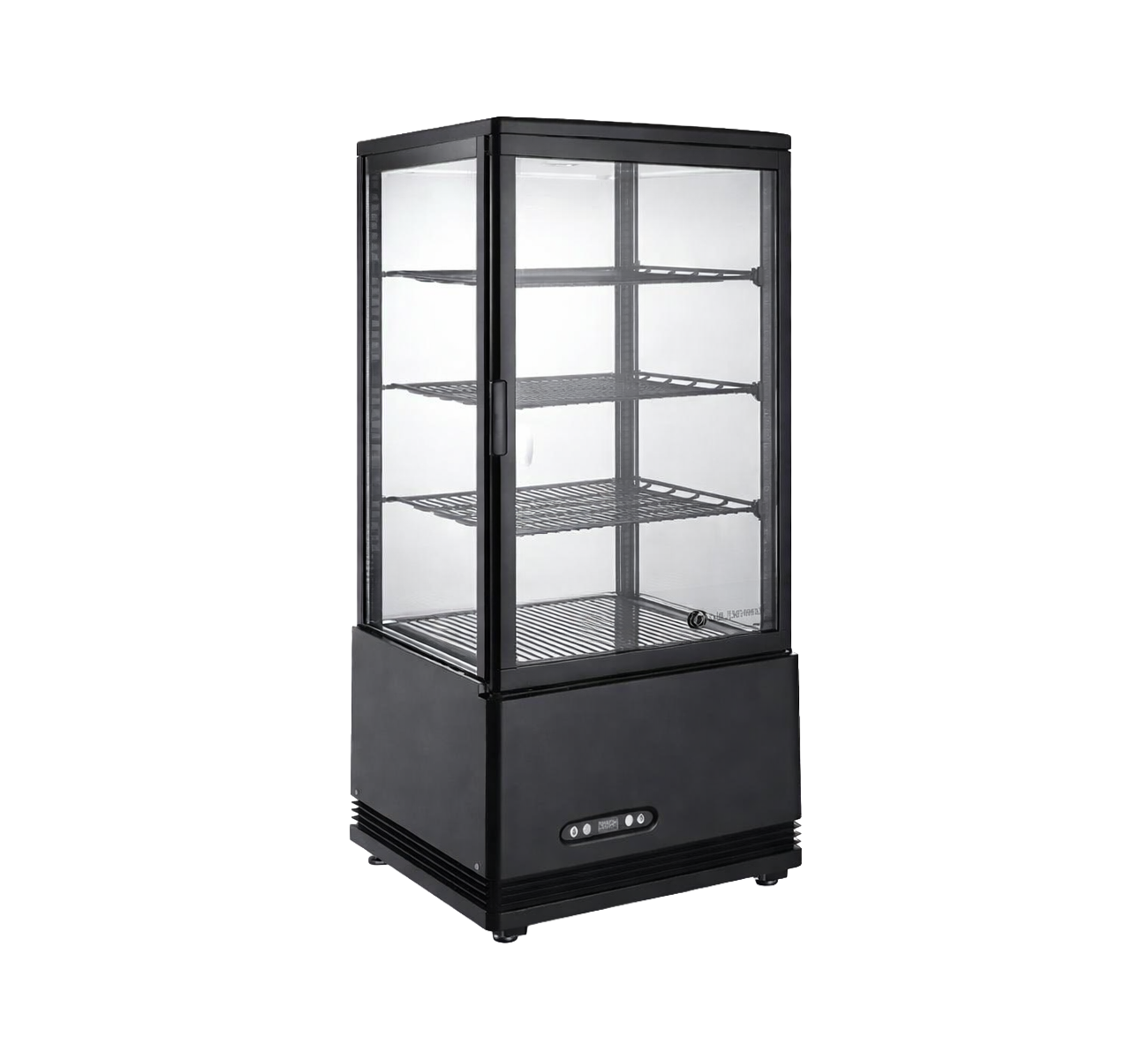Heladera-Warmer Vertical 4 caras Vidriadas 78 Lts Iluminacion en 4 esquinas Controlador digital de temperatura Estantes ajustables en altura Puerta frontal de DVH 4 Caras DVH – visibilidad total sin abrir puertas Base con pies Sistema de enfriamiento forzado Sistema calefaccion superior con aire circulante Frio y calor intercambiables con tecla indicadora Descongelamiento automatico Capacidad bruta: 78 Lts Rango de temperatura: 0-12 °C Funcion Heladera – 30-60 °C Funcion Warmer Conexion electrica: 220 V Refrigerante: R134a Peso neto: 36 Kgs Dimension total: 452 x 406 x 966 mm