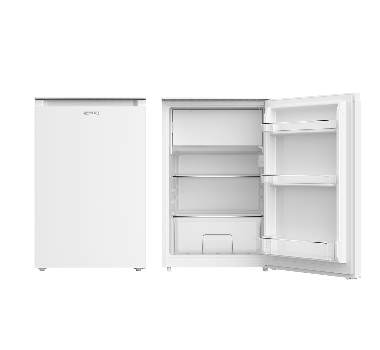 Heladera con congelador de 125 Litros – KS125RW Dimensiones (mm): Ancho: 545 – Alto: 861 – Profundidad: 548 Clasificacion Energetica: A Capacidad: 125 Litros Volumen Refrigerador: 108 Litros Volumen Congelador: 16 Litros Gas Refrigerante Ecologico R600a Estantes de vidrio templado Iluminacion Led Puerta reversible Color: blanco