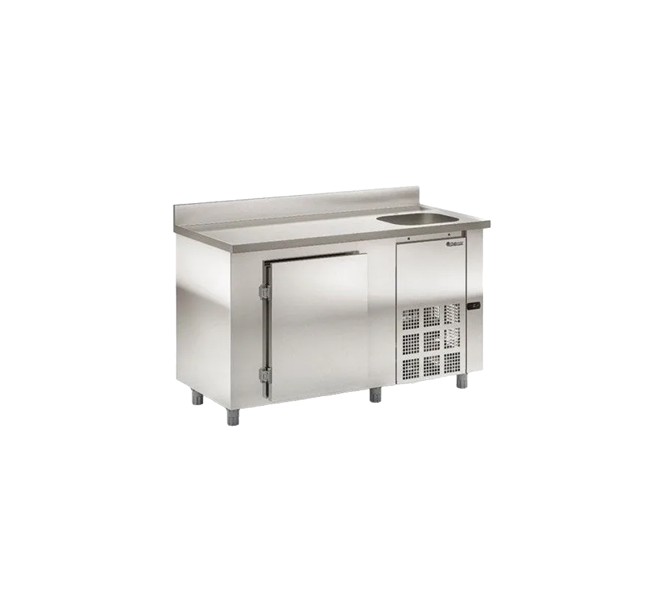Heladera Mostrador Ciego Gelopar Acero Inox Con Bacha 150 Cm Altura: 90 Cm Profundidad: 70 Cm Frente: 150 Cm Consumo: 4,84kW – dia Peso neto: 76 kg Capacidad neta: 347 litros Refrigeracion: Aire forzado con evaporador eliminado Temperatura: 0 a 7C Deshielo: Manual Controlador electronico con indicador de temperatura Interior en chapa aluminizada con tratamiento anticorrosivo y piso en acero inoxidable 430. Exterior (Laterales, frente y tapa en acero AISI 304 esmerilado)