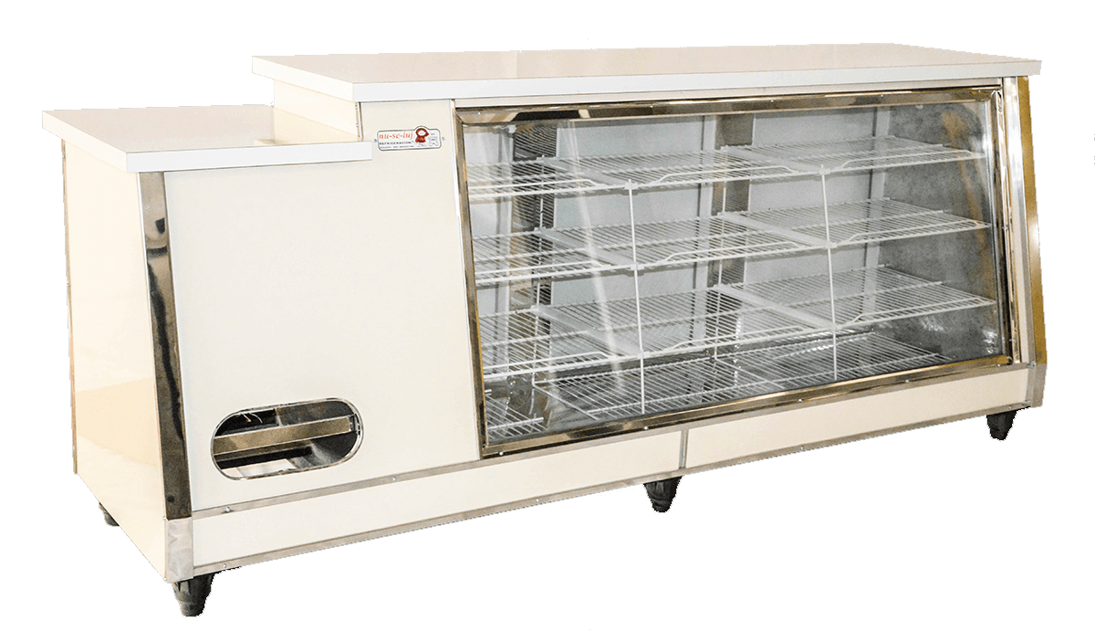 – Realizada en fenólico de primera calidad, revestido en laminado decorativo. – Piso interior de acero inoxidable, laterales y techo galvanizado. – Estantes de rejas de hierro con pintura horneada. – Forzador lateral. – Iluminación interior.