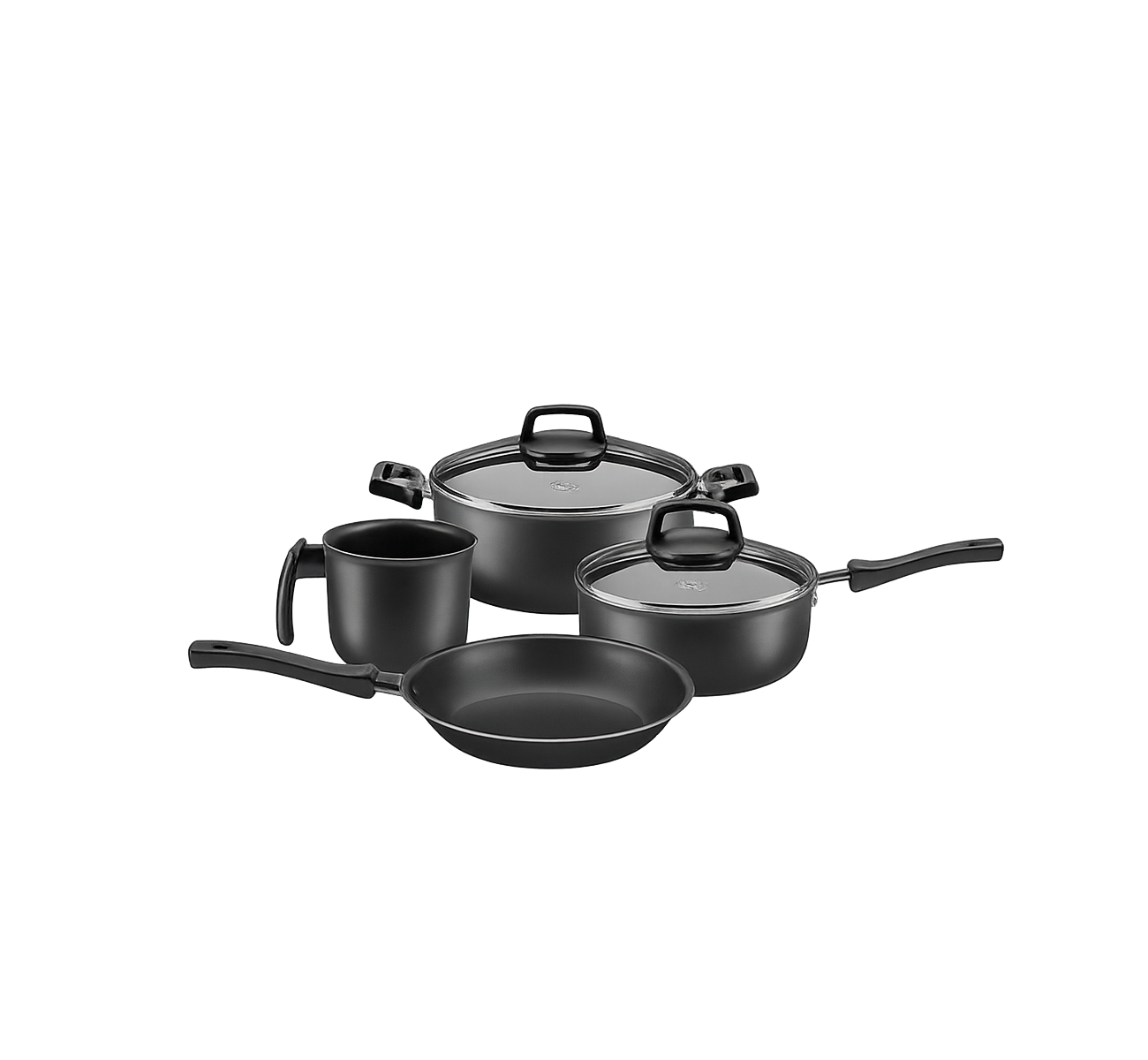BATERIA DE COCINA SAFIRA 4 pzas. GRAFITO CON ANTIADHERENTE MTA – Codigo: 21368 Cacerola c-mango y tapa vidrio: Diametro 16 cm | 1,40 lt | Espesor 1,2mm | Altura 7,8 cm Cacerola c-asas y tapa vidrio: Diametro 18 cm | 1,80 lt | Espesor 1,2mm | Altura 7,6 cm Sarten Francesa: Diametro 18 cm | 0.70 lt | Espesor 1,2mm | Altura 3,0 cm Jarro Nº: 12 | 1,00 lt | Espesor 1,2mm | Altura 10,0 cm Confeccionado en aluminio de 1.2 mm, con revestimiento interno y externo de antiadherente Superflon. Tapas de vidrio templado con salida de vapor. Mangos y asas confeccionadas en bakelita atermica. Pueden utilizarse en cocinas a gas, electricas y vitroceramicas y son aptas para lavavajillas.