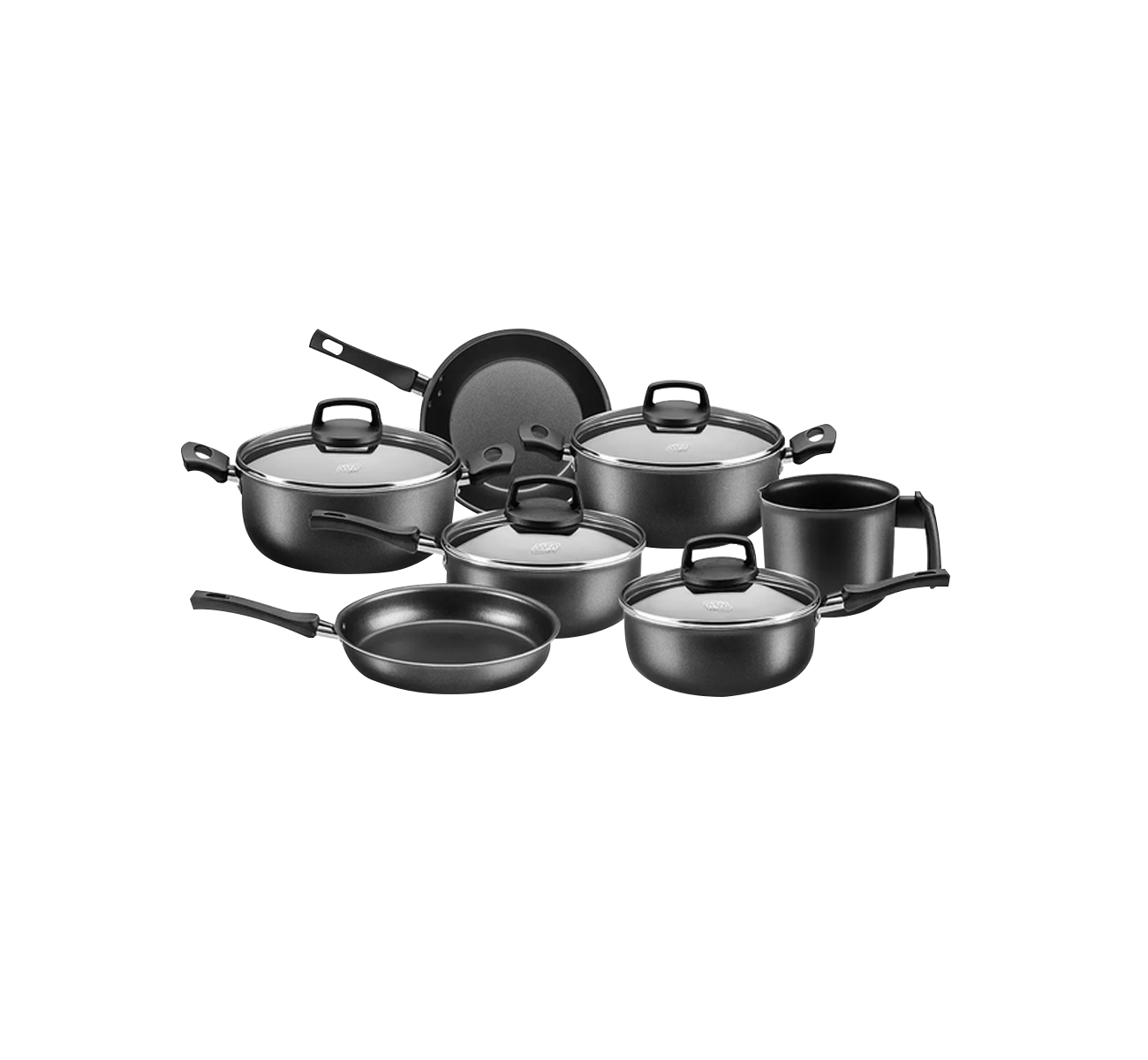 BATERIA DE COCINA MADRI 7 PIEZAS GRAFITO CON ANTIADHERENTE MTA Codigo: 17529 – Cacerola c-mango y tapa vidrio: Diametro 16 cm | 1,40 lt | Espesor 2mm | Altura 7,8 cm – Cacerola c-mango y tapa vidrio: Diametro 18 cm | 1,80 lt | Espesor 2mm | Altura 7,4 cm – Cacerola c-asas y tapa vidrio: Diametro 20 cm | 2,60 lt | Espesor 2mm | Altura 8,9 cm – Cacerola c-asas y tapa vidrio: Diametro 22 cms.| 3,30 lt | Espesor 2mm | Altura 9,0 cm – Sarten Francesa: Diametro 20 cm | 0.80 lt | Espesor 2mm | Altura 3,7 cm – Sarten Alta: Diametro 22 cm | 2.20 lt | Espesor 2mm | Altura 6,3 cm – Jarro Nº: 12 | 1,20 lt | Espesor 1,2mm | Altura 10,0 cm
