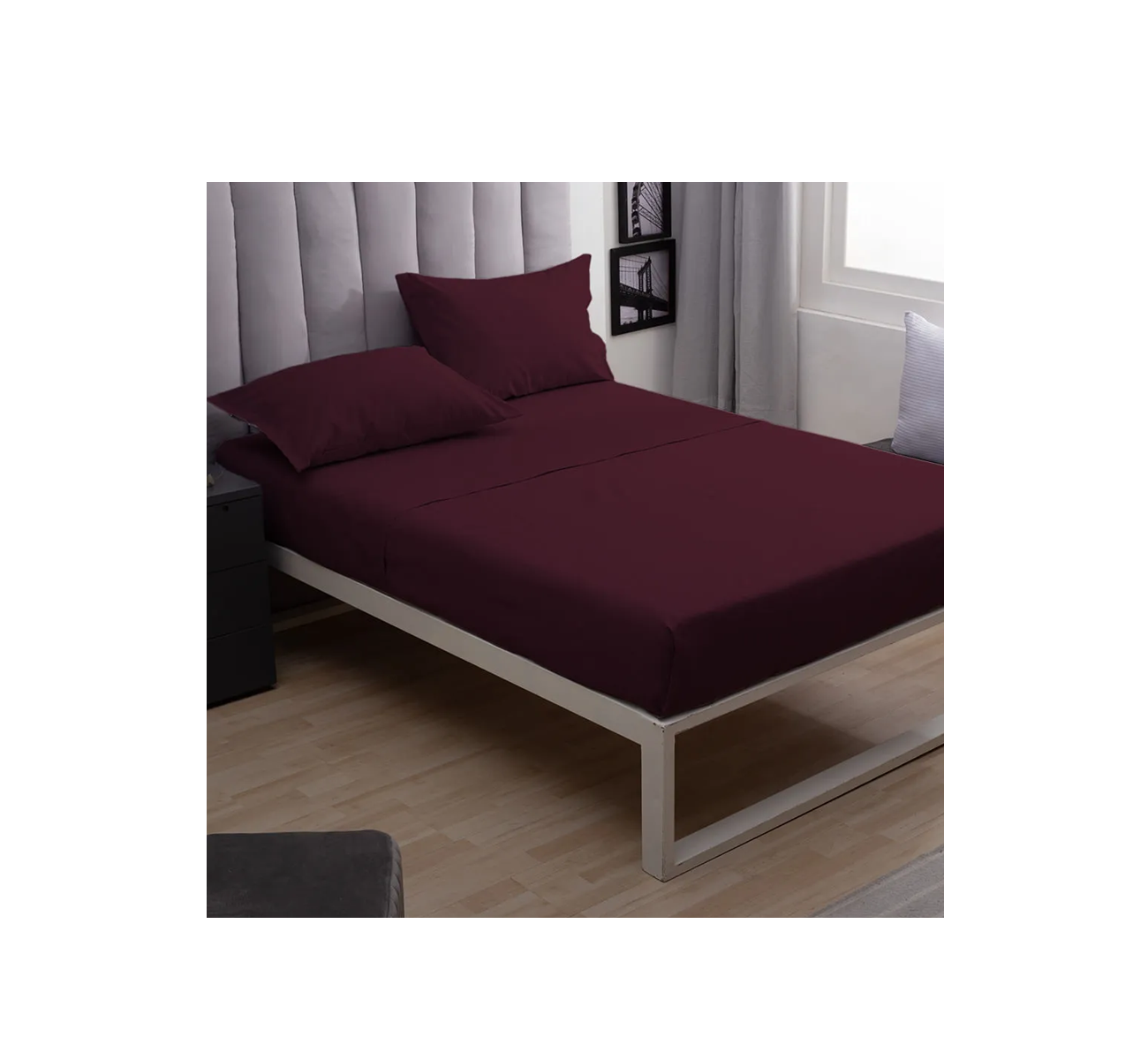 JUEGO SABANA 150 HILOS QUEEN BURGUNDY CASABLANCA