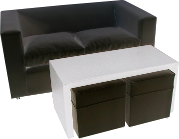 JUEGO SILLON C/2 POUF NEGRO + MESA RATONA BLANCA