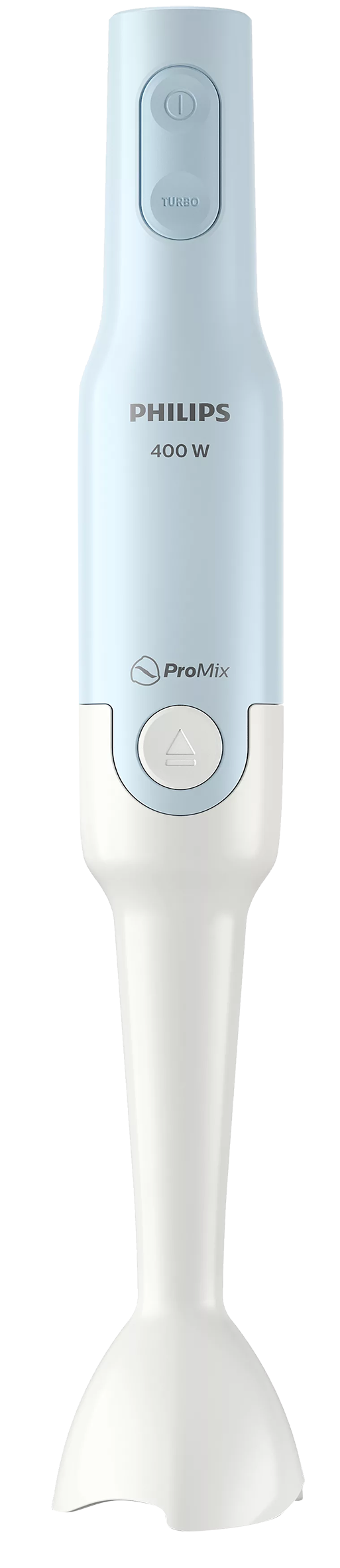 1 velocidad + Turbo Color : Azul perla Material de la caja protectora : Plástico Material de la barra : Plástico Potencia eléctrica : 400W Tecnología ProMix Diseño ergonómico Sistema de liberación con un solo botón Protector de hoja antisalpicaduras