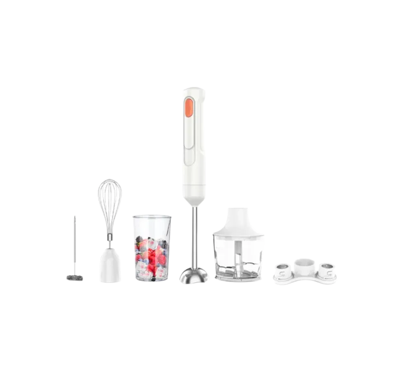 Minipimer 60W Wadfow – WFN042T Inalambrica con Accesorios Set 5 en 1 Potencia: 60 W Voltaje: CC 8 V Bateria: 1500 mAh Varilla mezcladora con eje SUS 2 cuchillas de acero inoxidable Mezcla jugos o salsas Incluye: 1 recipiente picador de 500 ml 1 batidor 1 taza medidora