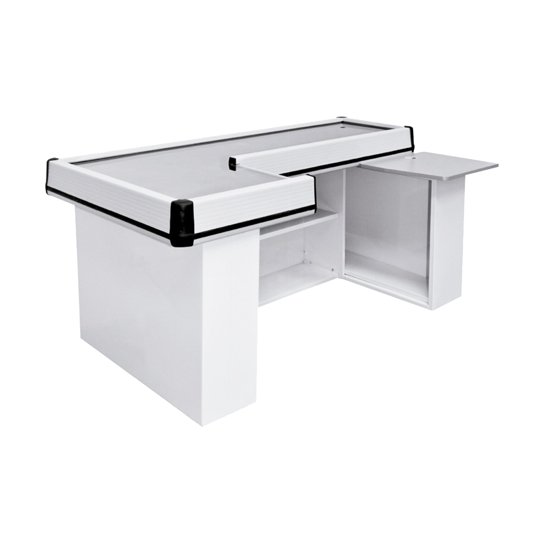 Con mesa para caja PASILLO: Ancho: 510 mm Largo: 1540 mm. Alto: 820 mm Mesada de acero inoxidable MESA PARA CAJA: Ancho: 500 mm Largo: 560 mm. Alto 880 mm Mesada de laminado plástico con PVC No incluye Gaveta Recaudadora. https://www.industriasmengarelli.com/space-recto/