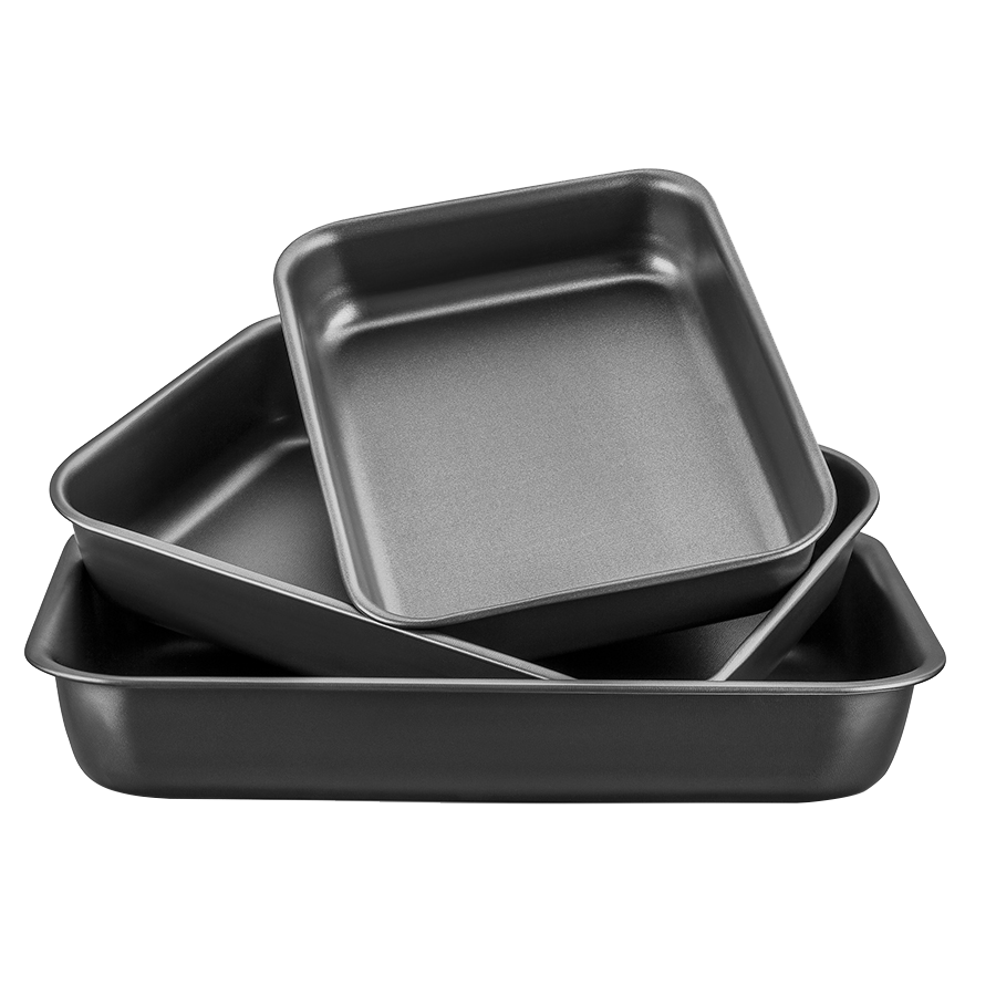 SET x3 ASADERAS PROFUNDA CRISTAL CON ANTIADHERENTE MTA Este set incluye: Asadera rectangular N°1: 29,3 x 21,7 x 5 cm Asadera rectangular N°2: 33,6 x 23,3 x 5,5 cm Asadera rectangular N°3: 37,5 x 27 x6 cm Pueden utilizarse en cocinas a gas, eléctricas y vitrocerámicas y son aptas para lavavajillas. Libre de PFOA