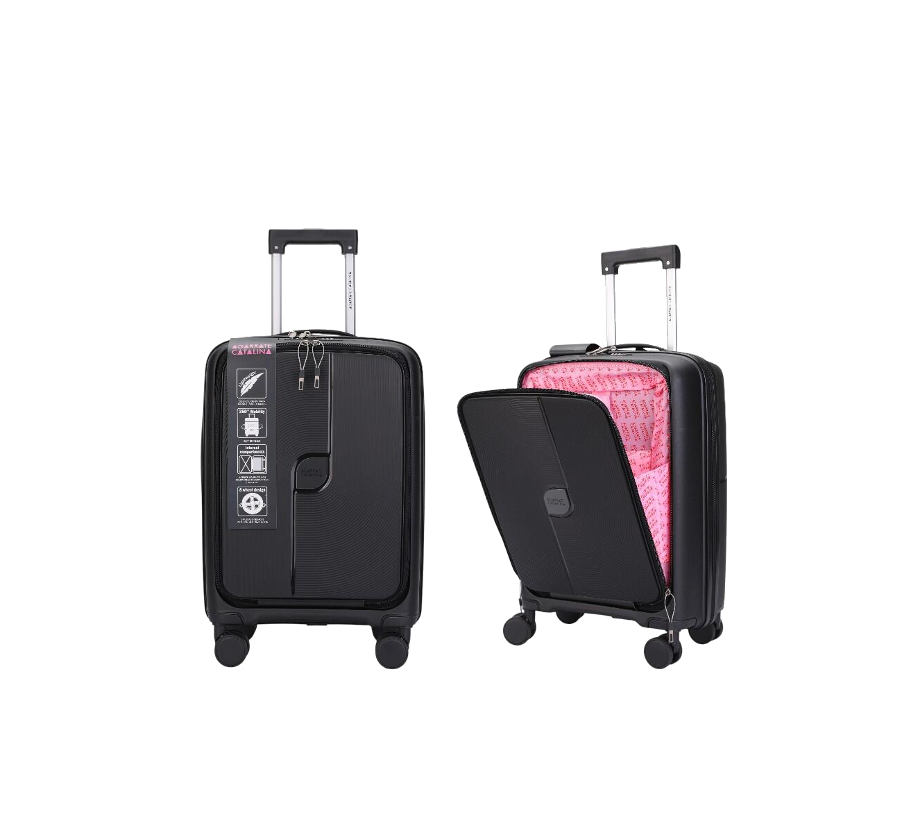 VALIJA CARRY ON 20” – ACVA11N CON FRENTE RIGIDO REBATIBLE INTERIOR FORRADO CON SEPARADOR Y BOLSILLOS 4 RUEDAS DOBLES GIRATORIAS 360° CANDADO DE COMBINACION MATERIAL ABS ULTRA LIVIANO COLOR : NEGRO