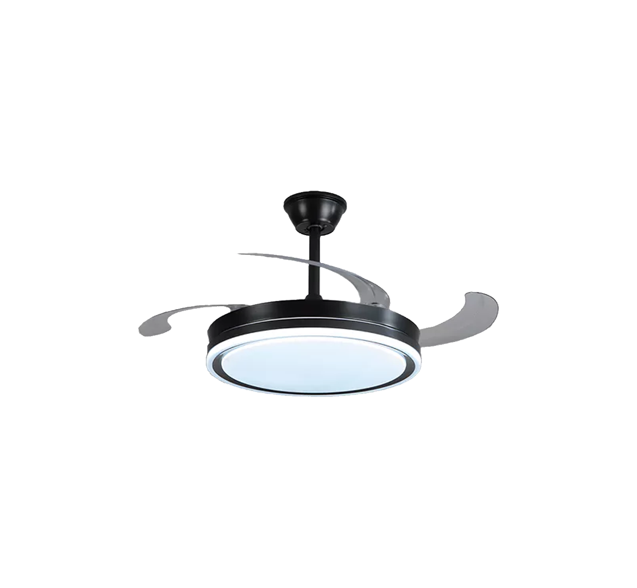 Ventilador de techo con luz, aspas retractiles transparentes. 6 velocidades Control remoto Timer programable Recircula el aire caliente en invierno